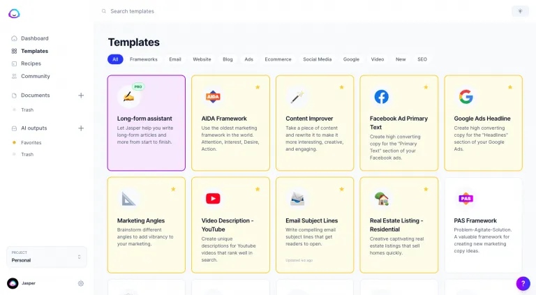- SEO Keywords: Jasper has a keyword tool as well to ensure that the content includes relevant keywords to help you rank better.