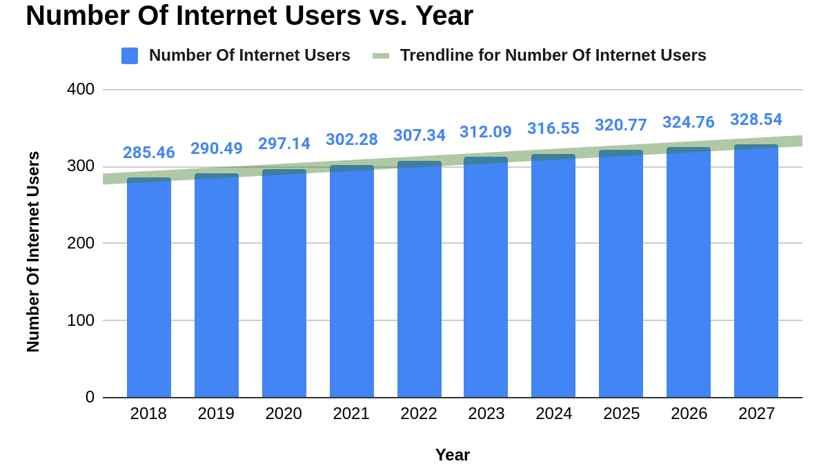 - The global number of internet users is more than 5 billion, i.e., approximately 63% of the total global population.