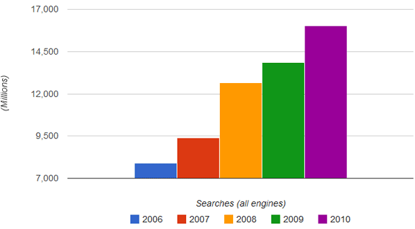 Search will continue to grow in remaining months left in 2009 despite the poor economy. Google ended the previous year with 63.5 % market share of all search queries performed in the U.S. Market share has inched up steadily from 58.5 % in January, 2008.