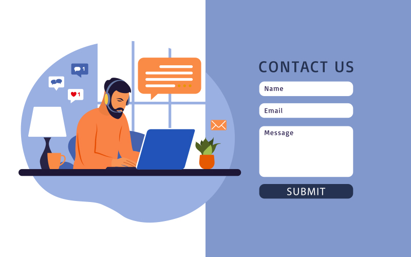 Contact forms are another effective way to encourage user interaction. Consider keeping it short by adding only the important fields and keeping it simple by using simple words, hints, and instructions, if needed.
