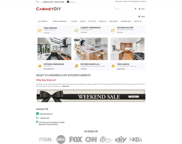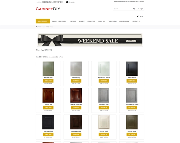 Cabinet DIY has the widest selection of RTA (Ready To Assemble) kitchen and matching bathroom cabinets available. Feel free to explore the different kinds of wood, styles and colors. We have what you are looking for to get that special look.