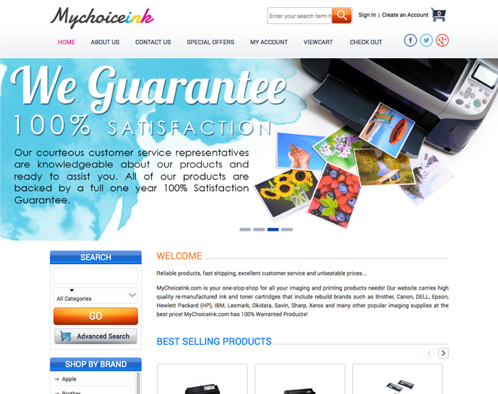 MyChoiceInk.com is your one-stop-shop for all your imaging and printing products needs! Our website carries high quality re-manufactured ink and toner cartridges that include rebuild brands such as Brother, Canon, DELL, Epson, Hewlett Packard (HP), IBM, Lexmark, Okidata, Savin, Sharp, Xerox and many other popular imaging supplies at the best price! MyChoiceInk.com has 100% Warranted Products!